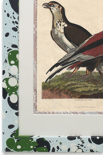 The Buffon collection is firstly reprinted on acid free bamboo paper in England. They are then mounted in unique hand marbled frames. These are also crafted in England from British pine and marbled in Lincolnshire.