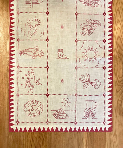 Designed in the signature illustrative-meets-heritage style this printed table runner h is a work of art in itself. Match with Cherry Flips's Redwork napkins for a standout and timeless table.