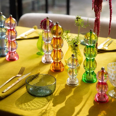 The Amber Icy Bobbin Salt and Pepper Mill combines striking design with practicality. Crafted from durable acrylic with a transparent design that allows you to see the salt or pepper inside the grinder. Addison Ross's signature Bobbin shape adds a touch of elegance to your table. Standing 24cm tall, this mill is both a functional kitchen tool and a stylish tabletop centrepiece, perfect for everyday use and special occasions.
