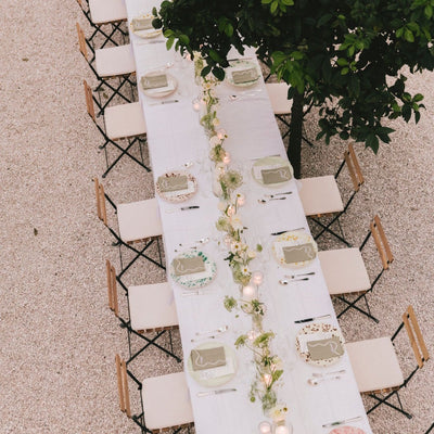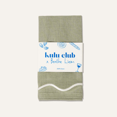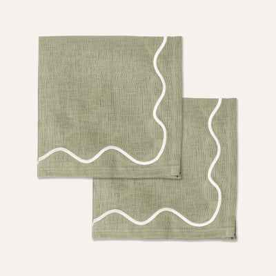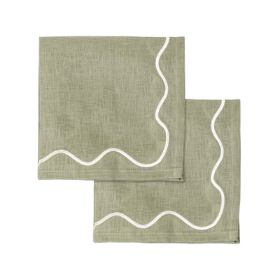 This pair of 100% linen napkins in a sage green colour, with a playful wavy embroidery in contrasting white, adds a touch of sophistication to the dining table.