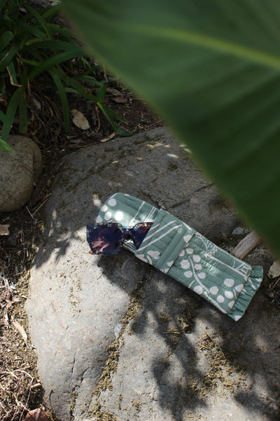 This glasses case is made from 100% cotton and printed with eco-friendly dyes. Measuring 10 x 25 cm, it combines style with everyday functionality.