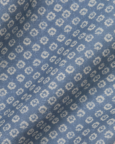 A pretty floral pattern reimagined by Imogen in a pale blue with its tones taken from Cornflower with ivory flowers.