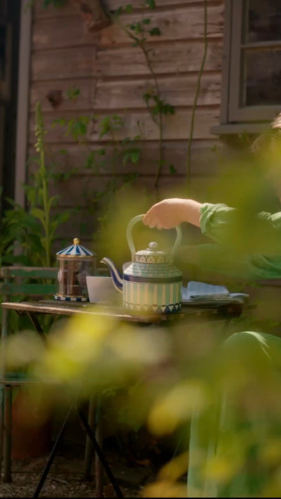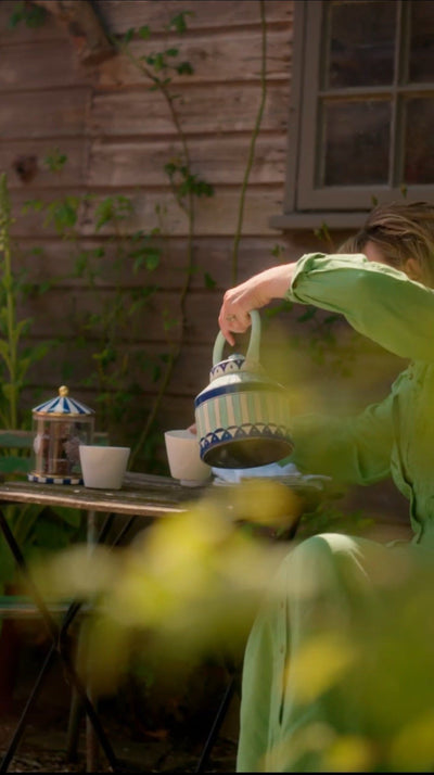 Designed in collaboration with artists in Jaipur these tea kettles are skilfully hand painted making each one a unique piece of art. The kettle can be used as a teapot. Sophie has a thing about small tea pots as she doesn't see the point of them so they have made these extra large. The kettles hold a surprising amount of liquid - 2500ml  - always enough for a refill.