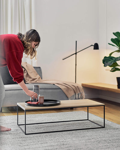 Introducing Kafibor - amazingly sleek and simple coffee table adds an exceptional comfort to your living room. Kafibor is made of an incredibly durable powder coated steel, offering you a continuous, long-lasting use and brilliant walnut veneer, bringing remarkable elegance to your living room. Precisely crafted construction and top quality materials provides a truly elegant visual appeal resulting in an amazing daily use comfort. You'll find its top very roomy, but the whole form very delicate. What's also great is that it works with any sofa.