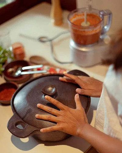 The Large Karipot is part of Tiipoi's ceramic cookware range. This ceramic pot is completely hand-built from a combination of river clay and ground stone sourced from Longpi, in the North East of India. The hand-burnishing process used during the making of Karipot gives it a naturally non-stick surface making it ideal for slow cooking or one-pot everyday meals. Oils and ingredients are preserved while cooking as the pot recirculates moisture and preserves flavour. Tiipoi's clay cooking pot can be used on both gas and electric hob and in the oven.
