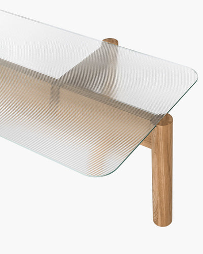 Meet Kob - an outstanding coffee table with potential to revive your living room, no matter what your style is. With its textured glass table top and unconventionally spaced legs made of solid wood, Kob is a real treat for every enthusiast of minimalist design and bold material combinations.