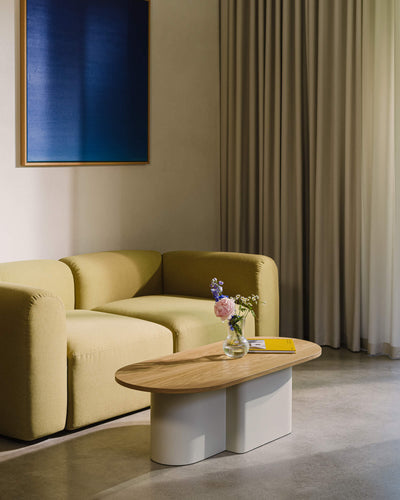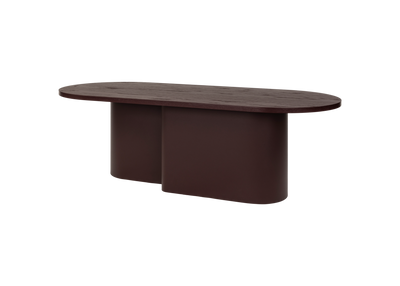 Meet Looi - an oval, burgundy coffee table made of oak veneer and steel. It's a minimal living room furniture with a considerably large top of 115 x 50 cm and rounded edges, which make it a unique and practical interior add-on. Modern design, perfect for both spacious and small interiors.