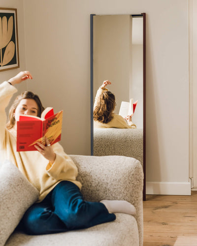 Discover the Lun Mirror, designed to neatly lean against any wall and enhance the aesthetic of your space. Whether it's in your hallway, bedroom, or living room, Lun mirrors your style with its chic, two-tone frame, also available in a neutral oak finish. More than just a decorative piece, Lun visually expands your interior, making it a standout feature of your home. Perfect for adding depth and a touch of elegance, it’s as practical as it is striking.
