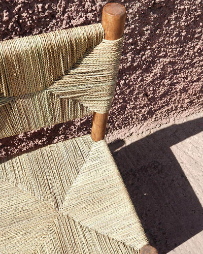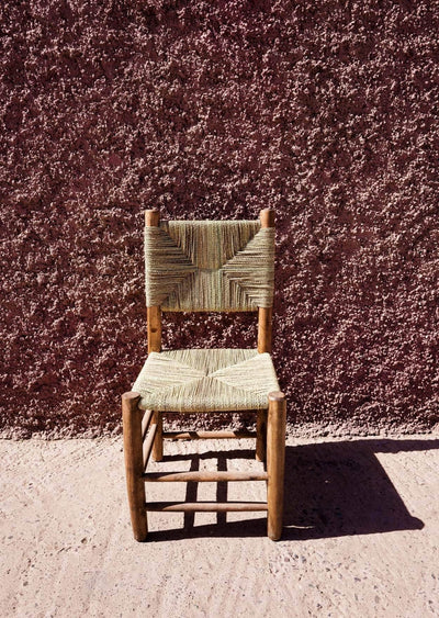 Chair with woven straw seat. This chair, designed with essential and minimalist lines, certainly evokes Mediterranean interiors, but is equally suited to metropolitan homes.