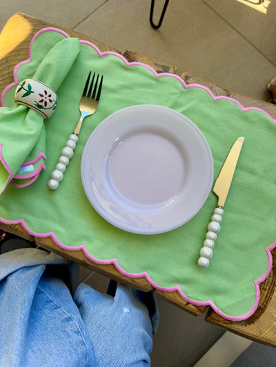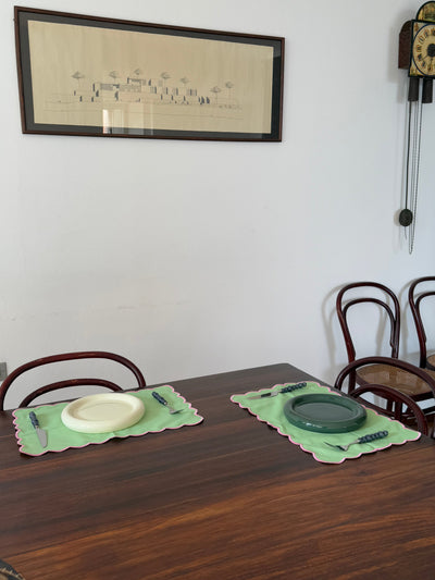 Add some playful color to your dining table with the Dalias placemat. This green and pink placemat not only protects your table from spills and scratches, but it also adds a fun pop of color to your mealtime.