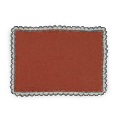 Elevate your dining experience with this classic placemat featuring a delicately hand-crocheted scalloped edge. Meticulously crafted by a cooperative of Nubian women in Egypt, this placemat combines timeless elegance with intricate craftsmanship, adding a touch of luxury to every meal.