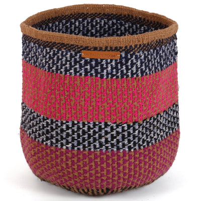 SHAKA is a beautiful, one-off handwoven basket boasting bands of Pink, Blue and Brown. Hand woven by women within a small weaving cooperative in rural Eastern Kenya, these colourful baskets are woven using traditional methods and geometric designs. These storage baskets make fabulous planters as well as fun storage for nursery toys, knitting, craft activities and winter accessories – their uses are endless!