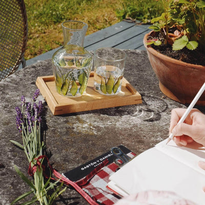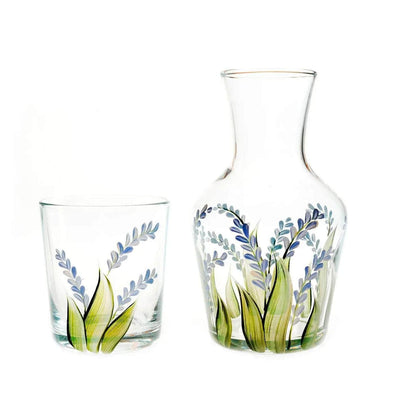 Add a touch of romance and feminitiy to your nightstand. The inks used are non-toxic but not food-safe meaning the design is applied 2 cm below the lip of the product. Each set is hand painted so designs and colours may differ slightly from the photographs shown. Supporting skilled local artists. Glass imported from France and hand painted in the UK.
