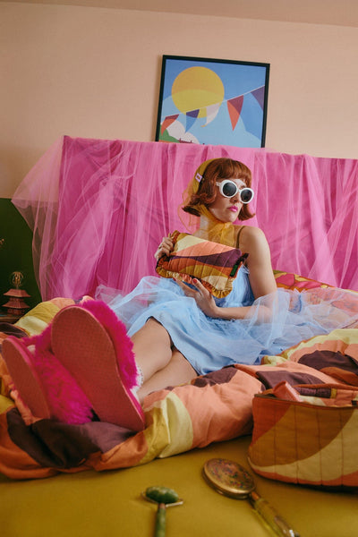 Crafted from sumptuously quilted organic cotton, this sustainable pouch is wonderfully soft and gentle. The adorable 3cm ruffle detail adds kitsch charm, while a secure zip closure keeps everything safe.