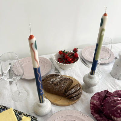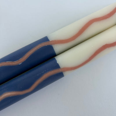 Pair of two dinner candles, hand-poured in a moroccan design using natural vegetable wax.