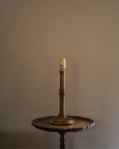 Inspired by an antique brass lamp that Imogen has owned and loved for many years, she recreated it with the finest wood-turner in the UK that she could find. Impeccably made, its solid wood foundations are have a rich wood stain applied enhancing its natural timber character to achieve what we believe to be the perfect depth of tone.