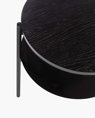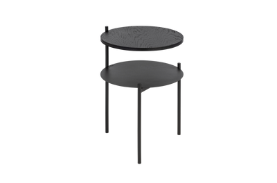 Tu is a practical and lightweight nightstand that also works well as a small round side table. Its veneered tabletop brings a warm wooden accent, while the convenient lower shelf keeps everyday essentials always at hand.