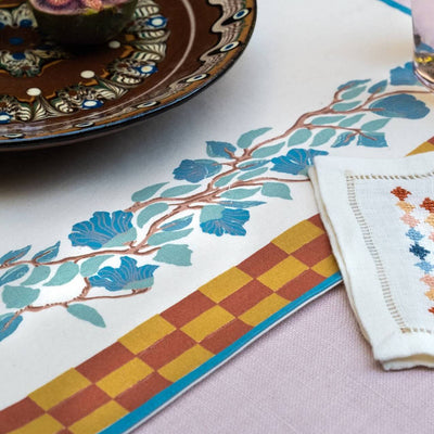 Adorned with a lively floral and chequerboard pattern inspired by tapestries from the Wissa Wassef Art Centre, these stylish placemats will be the talk of any dining room table.