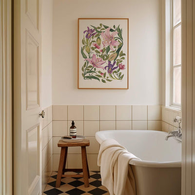 Introducing "With Love Lily", a stunning fine art print from Ellie Mae, inspired by a beautiful bouquet from Freddie’s Flowers. This piece is part of my new series-  A Hidden Muse, where I create a design inspired by something I love — big blooming lilies, delicate carnations, and vibrant iris flowers. Hand-painted with care, this piece brings a sense of fresh floral beauty to any space, available in A4, A3, and A2 sizes. The soft, natural tones and detailed flowers in "With Love Lily" evoke a sense of tranquility, making it the perfect addition to your home. Whether you have a modern cottagecore vibe, a boho-inspired interior, or a love for nature, this artwork will complement any decor. It’s ideal for brightening your living room, bedroom, or workspace with a fresh, botanical touch. This print comes Unframed, frames used for styling purposes.