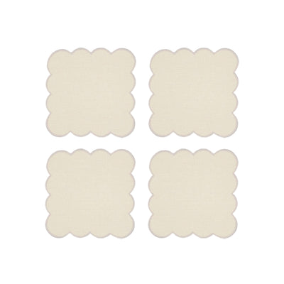 Zero-Waste Scalloped Linen Cocktail Napkins Vanilla - Set of 4