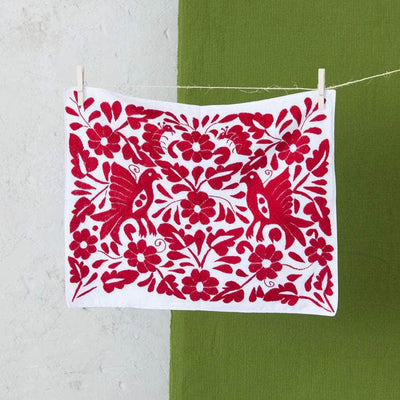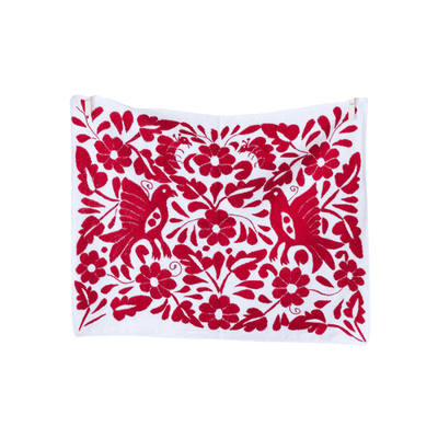 Hand embroidered by a group of 25 men and women from the state of Oaxaca. The fabric is drawn by hand with figures of birds and flowers, flora and fauna that live in the community where the artisans are from, commonly they embroider what they see around them.