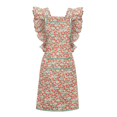 Full Frill Apron in Red and Green Printed Cotton Fabric
