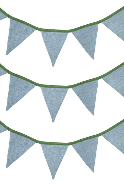 This beautiful light blue linen bunting is 5m long and offers a simple, colourful way to decorate any space, inside or out.  Ideal to hang in nurseries, kitchens, bare spaces and great for outdoor picnics to be hung in trees