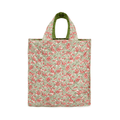 The Quilted Everything Bag made from remnant cotton fabric in a floral print and features a reversible design with a red cotton lining. Deep enough to hold all your essentials for a day out or weekend away.