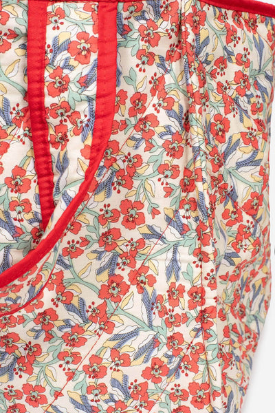 The Cubed Everything Bags are perfect for everyday use. Made from remnant cotton printed fabric with a red trim and quilted with remnant British wool from the North of England. Fully lined with contrasting red remnant cotton fabric and quilted handles.