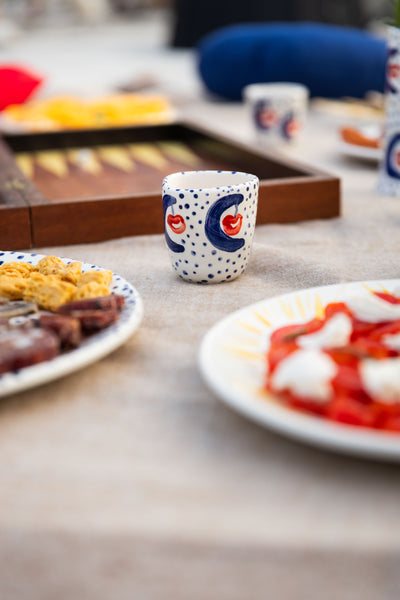 Our irregular shaped handmade espresso cup is moulded with ♡ and hand-painted in our Moonkissed design, in Greece. More than just a typical espresso cup, it's a unique piece that will infuse contemporary style into any space.