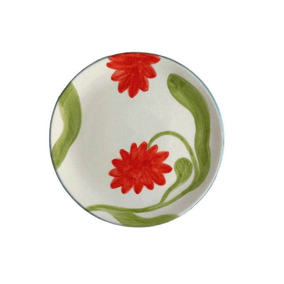 Experience the joy of Rose Balimba's Handpainted Red Flower Dessert Plates, meticulously crafted and hand-painted in Portugal. Designed by Jessica Le Meur, these plates are a delightful fusion of artistry and functionality.