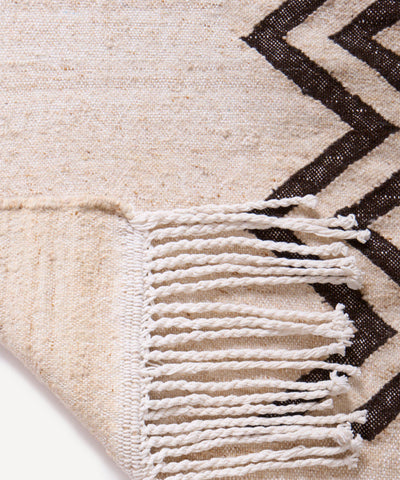 Flat-woven rug from the finest Moroccan Atlas wool and cotton blend by tightly interweaving cotton warp and wool weft strands on traditional vertical looms. An elevated essential, featuring a lighter but robust profile with a rustic feel underfoot, adorned with indigenous Amazigh motifs that bring a sense of calm whilst telling a bigger story.