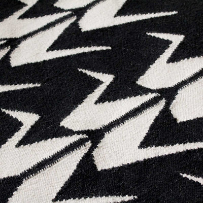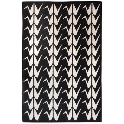 Handwoven by artisans in India from the finest New Zealand wool, this black and white flatweave rug features an origami crane inspired motif.