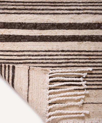 Flat-woven rug from the finest Moroccan Atlas wool and cotton blend by tightly interweaving cotton warp and wool weft strands on traditional vertical looms. An elevated essential, featuring a lighter but robust profile with a rustic feel underfoot, adorned with indigenous Amazigh motifs that bring a sense of calm whilst telling a bigger story.
