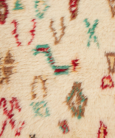 From the mountainous region of Azilal in Morocco, this rug features a soft natural cream background with red, green and toffee accents. Its palette is reminiscent of the local landscape in Azilal and will bring subtle colour to your home.