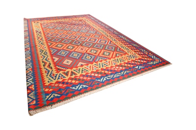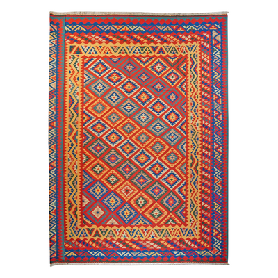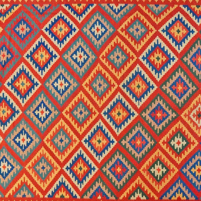The Qashgai are Turkic-speaking nomadic tribes who live in the region around Shiraz in southwest Iran. Kilims are reversible, flat wool rugs with a typical slit weave. This means that the weft has slits in which the colors change. The rugs feature classic Qashgai motifs such as rhombuses, squares, stripes, and Caucasian star motifs. Colors such as blue, yellow, red, green, and beige are used.