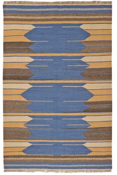 The Qashgai are Turkic-speaking nomadic tribes who live in the region around Shiraz in southwest Iran. Kilims are reversible, flat wool carpets with a typical slit weave. This means that the weft has slits in which the colors change. The carpets feature classic Qashgai motifs such as rhombuses, squares, stripes, and Caucasian star motifs. Colors such as blue, yellow, red, green, and beige are used.