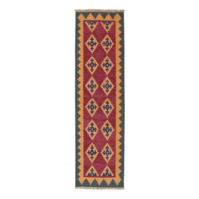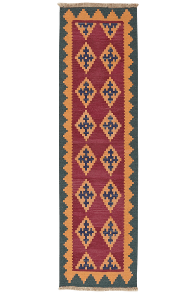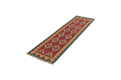 Length (in cm): 200 Width (in cm): 57 Color: Red SQM: 1.14 Border: Colorful Pile height (in mm): approx. 5 Type: Kilim Size code: 60x200