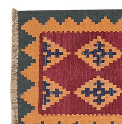 The Qashgai are Turkic-speaking nomadic tribes who live in the region around Shiraz in southwest Iran. Kilims are reversible, flat wool rugs with a typical slit weave. This means that the weft has slits in which the colors change. The rugs feature classic Qashgai motifs such as rhombuses, squares, stripes, and Caucasian star motifs. Colors such as blue, yellow, red, green, and beige are used.