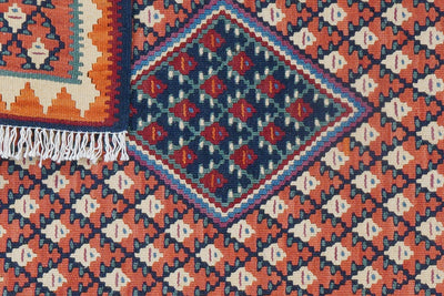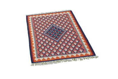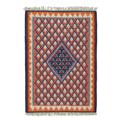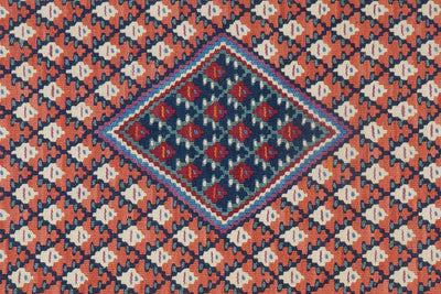 Senneh is the old name of the modern city of Sanandaj. The carpets originating from the city and from nomads or farmers in the surrounding region are known as Senneh rugs. These double-sided kilims feature the typical slit-weave structure. They often display small patterns with designs such as bouquets of roses and tree or floral motifs arranged in rows. Traditional Mahi motifs can also appear, as well as a large central field, often decorated with a rhombus in different colors.