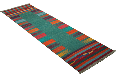 The Gashgai are Turkish-speaking nomadic tribes living in the region around Shiraz in southwest Iran. Kilims are flat, reversible wool rugs with a typical slit weave. This means that the weft has slits where the colors change. The rugs feature classic Gashgai motifs such as rhombuses, squares, stripes, and Caucasian star patterns. Colors such as blue, yellow, red, green, and beige are used.