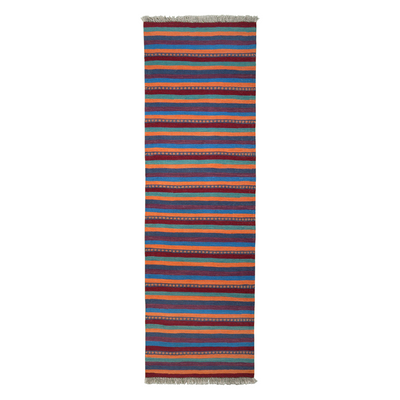 The Gashgai are Turkish-speaking nomadic tribes living in the region around Shiraz in southwest Iran. Kilims are flat, reversible wool rugs with a typical slit weave. This means that the weft has slits where the colors change. The rugs feature classic Gashgai motifs such as rhombuses, squares, stripes, and Caucasian star patterns. Colors such as blue, yellow, red, green, and beige are used.