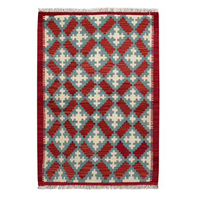 The Gashgai are Turkish-speaking nomadic tribes who live in the region around Shiraz in southwestern Iran. Kilims are reversible, flat-woven wool rugs created with a characteristic slit-weave technique. This means that the weft contains slits at the points where the colors change. These rugs showcase classic Gashgai motifs such as diamonds, squares, stripes, and Caucasian star patterns. A color palette including blue, yellow, red, green, and beige is commonly used.