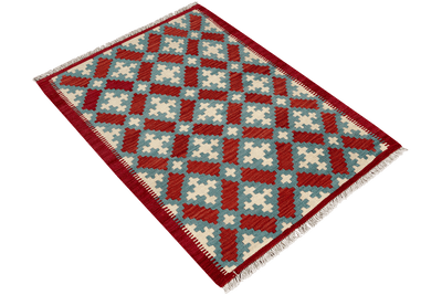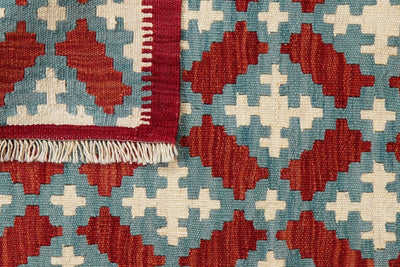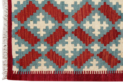 Length (in cm): 126 Width (in cm): 87 Color: Multicolored Sqm: 1.1 Border: Red Pile height (in mm): approx. 5 Type: Kilim Size code: 80x120 Weight (in kg): approx. 1.65
