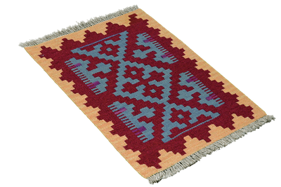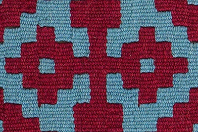 The Qashqai are Turkish-speaking nomadic tribes living in the region around Shiraz in southwest Iran. Kilims are flat wool rugs that can be used on both sides, featuring a typical slit weave. This means that the weft contains slits where the colours change. The rugs display classic Qashqai motifs such as rhombuses, squares, stripes, and Caucasian star motifs. Colours such as blue, yellow, red, green, and beige are used.