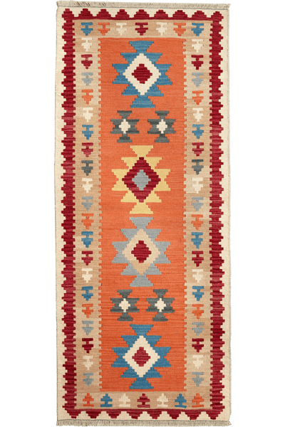 Length (in cm): 204 Width (in cm): 86 Color: Colorful SQM: 1.75 Border: Colorful Pile height (in mm): approx. 5 Type: Kilim Size code: 80x200, 100x200