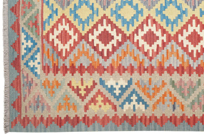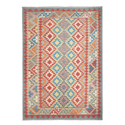 Length (in cm): 245 Width (in cm): 173 Color: Multicolored Sqm: 4.24 Border: Beige Pile height (in mm): approx. 5 Type: Kilim Size code: 170x240 Weight (in kg): approx. 6.36