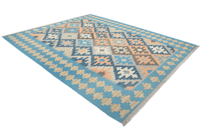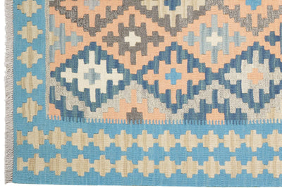 The Gashgai are Turkish-speaking nomadic tribes who live in the region around Shiraz in southwestern Iran. Kilims are reversible, flat-woven wool rugs created with a characteristic slit-weave technique. This means that the weft contains slits at the points where the colors change. These rugs showcase classic Gashgai motifs such as diamonds, squares, stripes, and Caucasian star patterns. A color palette including blue, yellow, red, green, and beige is commonly used.