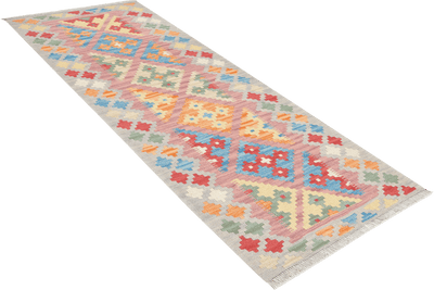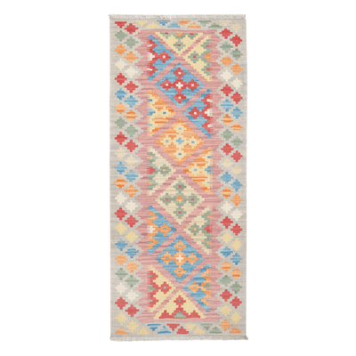 The Gashgai are Turkish-speaking nomadic tribes who live in the region around Shiraz in southwestern Iran. Kilims are reversible, flat-woven wool rugs created with a characteristic slit-weave technique. This means that the weft contains slits at the points where the colors change. These rugs showcase classic Gashgai motifs such as diamonds, squares, stripes, and Caucasian star patterns. A color palette including blue, yellow, red, green, and beige is commonly used.