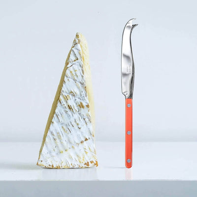 Get ready for a bright idea. Pearly combines the timelessness of the Bistrot collection, with a taste for colorful pairings complete with mother of pearl, pearlescent and opaline handles that bring the light to your table in a new way. This time, spoons, knives and forks come in twenty different colors, for sets you can design yourself from a wide range of colors and patterns. All you need, for a bright and bold table that’s deliciously customizable. The advantage of this cheese knife is that it can easily be used to serve your guests thanks to the two teeth at the end of its blade. Its unusual shape makes it an elegant and effective knife for perfectly cutting a wide variety of cheeses.
